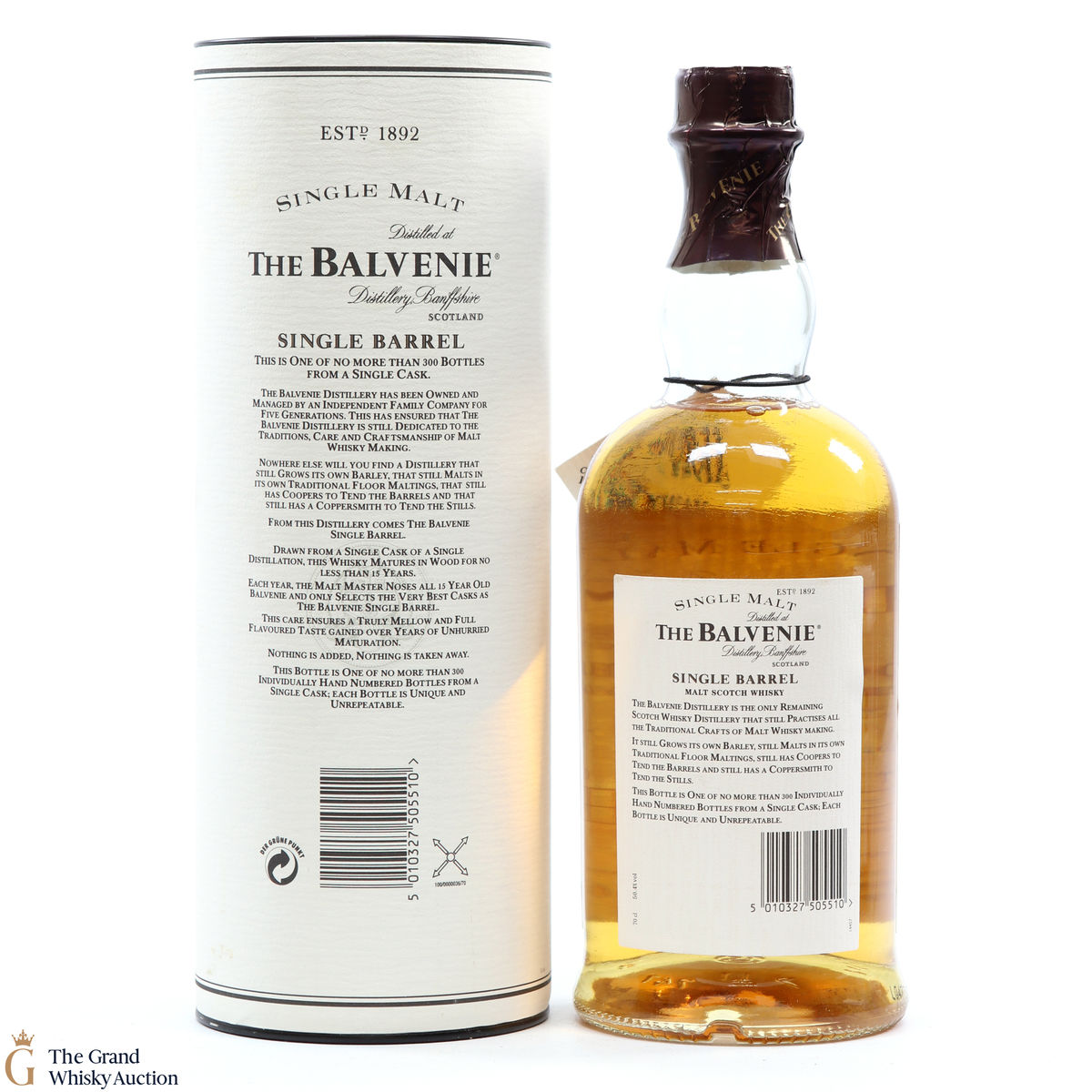An older edition of Balvenie's classic single barrel series, a 15-year-old single malt, drawn from a single traditional oak whisky cask and bottled by hand.
