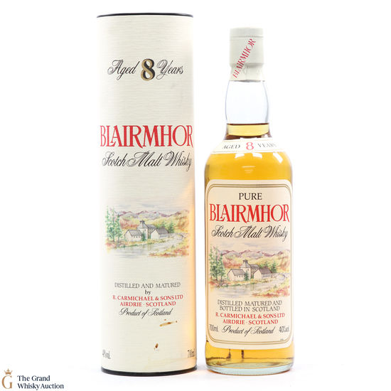 Blairmhor 8 year old Scotch whisky is a blended malt produced from up to 20 different single malt whiskies, the majority from the Highland and Speyside regions. All of these malts have been matured in casks for a minimum of eight years.