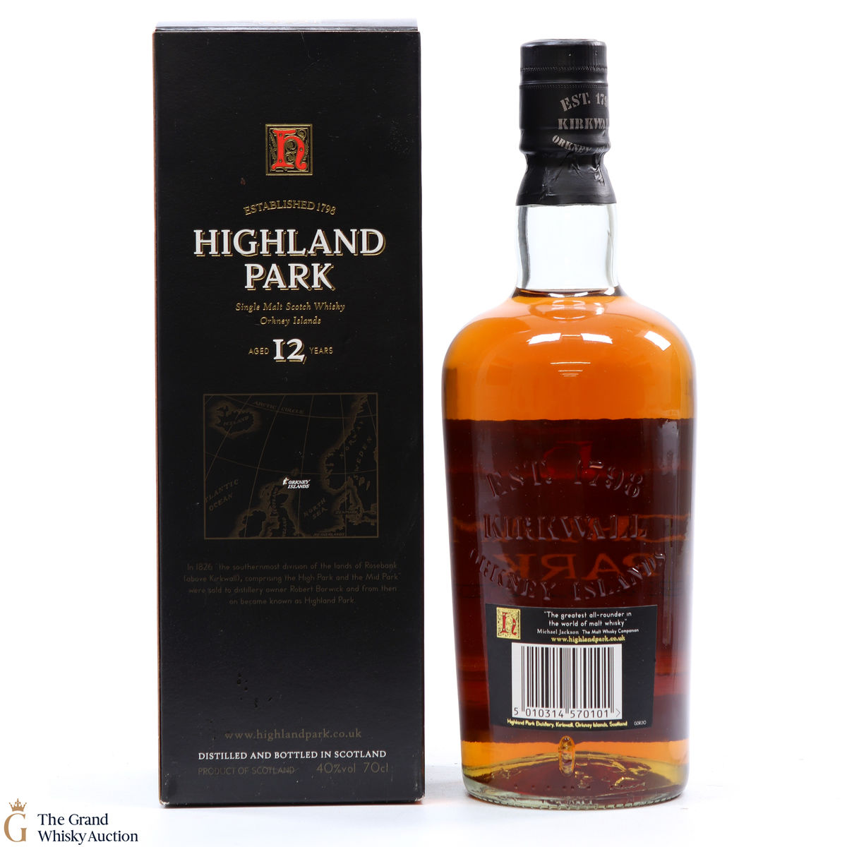 Highland Park 12 year old - one of the best malts in the world year on year. This bottling has been in its core range for over 100 years. This design of the bottle was used by Highland Park from 1999-early 2000s.
