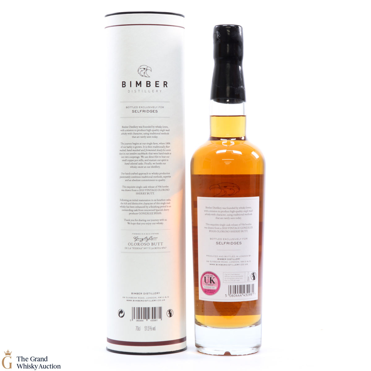 An exclusive partnership between the London distillery and department store Selfridges. This Bimber was made from single farm barley (which was malted at Westminster Maltings) and matured in four 1st fill American Oak Ex-bourbon casks. It was then finished in a 2010 single Oloroso sherry butt from hugely renowned Spanish sherry producer González Byass. Bottled in June 2020 at 51.5% ABV.