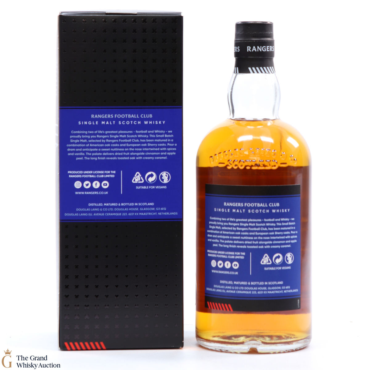 Following a world record-breaking season this small-batch, limited edition single malt was specially selected by Rangers Football Club and bottled by Douglas Laing. Matured in a combination of American oak casks and European oak Sherry casks.