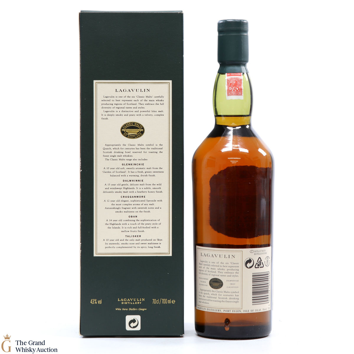 Due to the various ages of bottles and their seals, the condition of liquid is at the buyer's discretion and no claim can be lodged against failure/leakage in transit. Loss and breakage cover is available at 3% of the hammer price as standard. If the lot is not insured, no claim can be lodged against the courier or The Grand Whisky Auction for breakage or loss in transit.