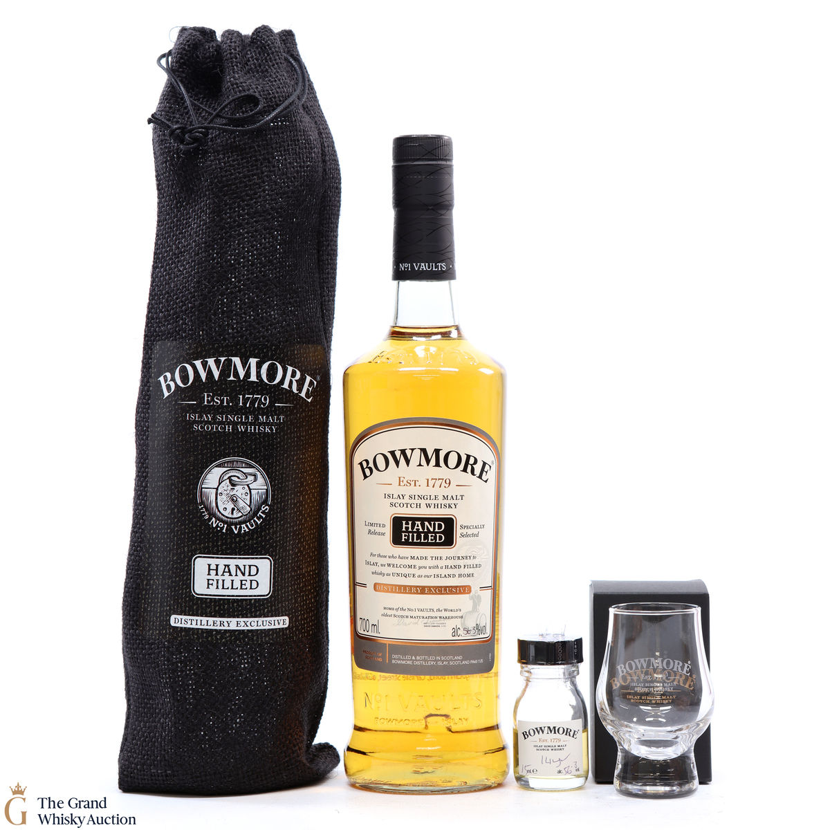 This lot also includes a 15ml sample and Bowmore tasting glass.