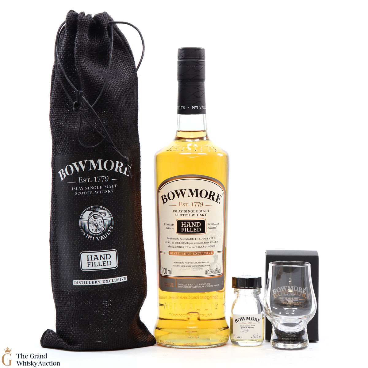 This lot also includes a 15ml sample and Bowmore tasting glass.