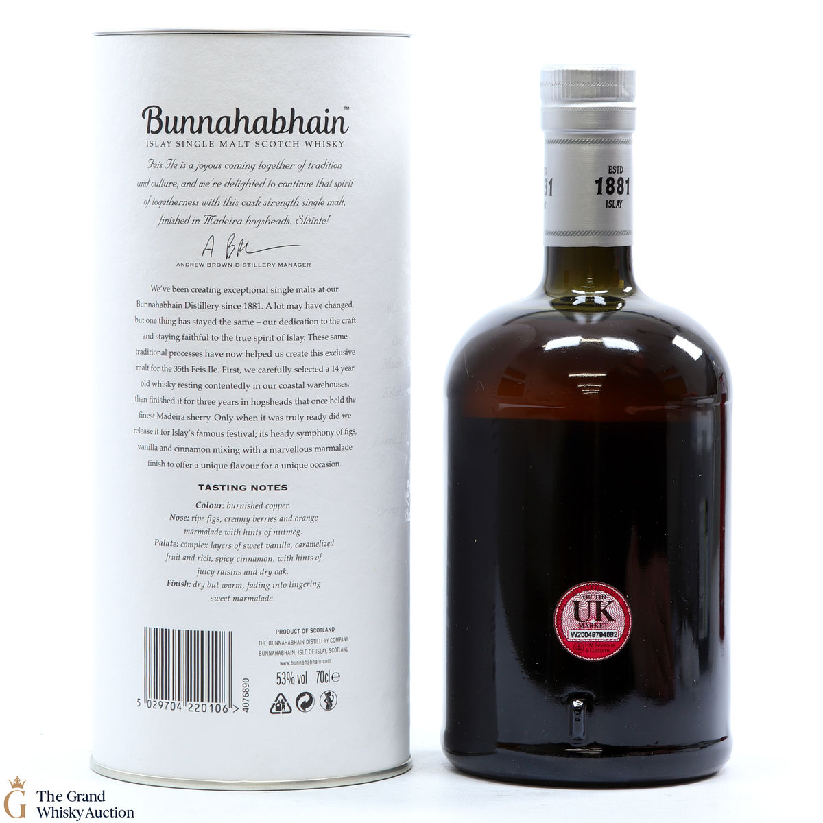 This limited edition single malt from Bunnahabhain Distillery was matured for 14 years in classic bourbon barrels, then finished in Madeira casks for another three years. Bottled at 53%, and released by Bunnahabhain for the 25th anniversary of Fèis Ìle - Fèis Ìle 2020. This is one of only 1164 bottles produced.