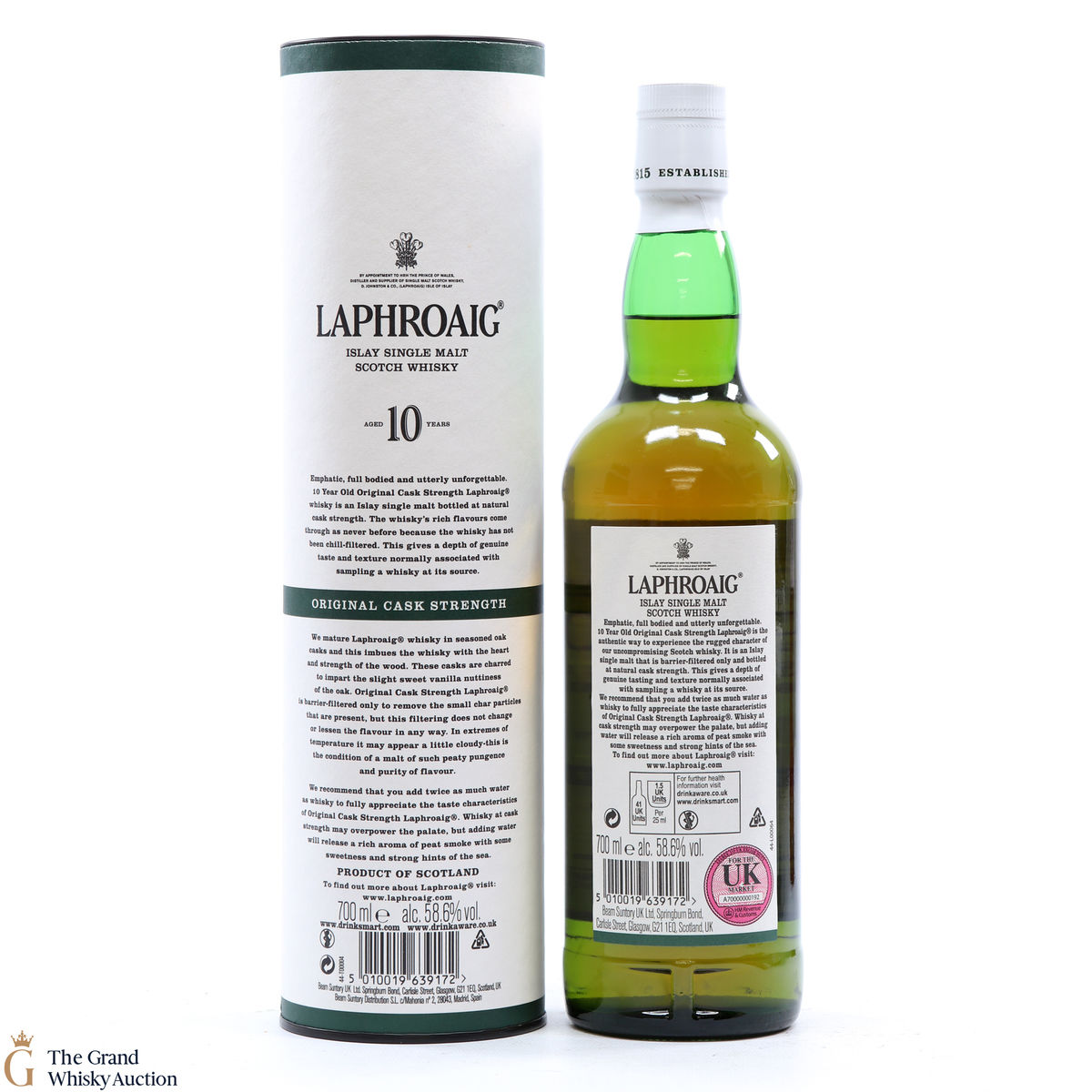 This original cask strength bottling of the medicinal 10 year old from Islay's bestselling distillery, Laphroaig. In making Laphroaig, malted barley is dried over a peat fire. The smoke from this peat, found only on Islay, gives Laphroaig its particularly rich flavour.