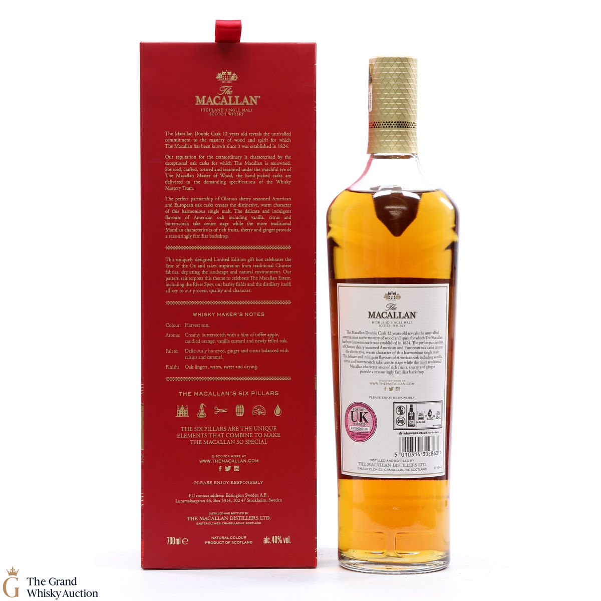 The decoration on the bottle and box is to celebrate 'The year of the Ox' which takes inspiration from the traditional Chinese fabrics, landscapes and natural environment.