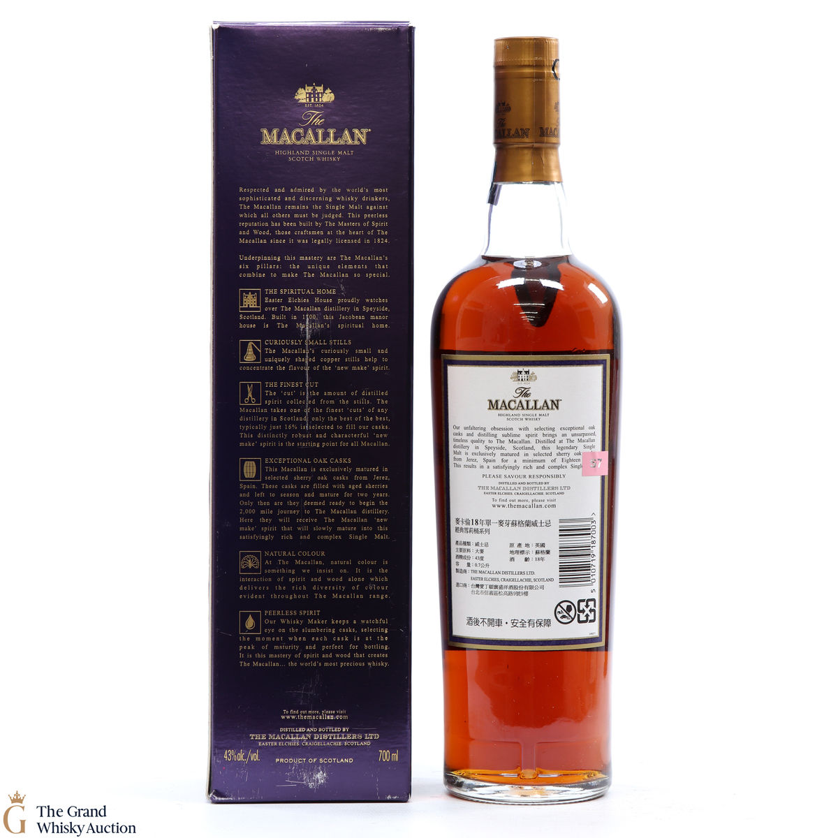 Due to the various ages of bottles and their seals, the condition of liquid is at the buyer's discretion and no claim can be lodged against failure/leakage in transit. Loss and breakage cover is available at 3% of the hammer price as standard. If the lot is not insured, no claim can be lodged against the courier or The Grand Whisky Auction for breakage or loss in transit.