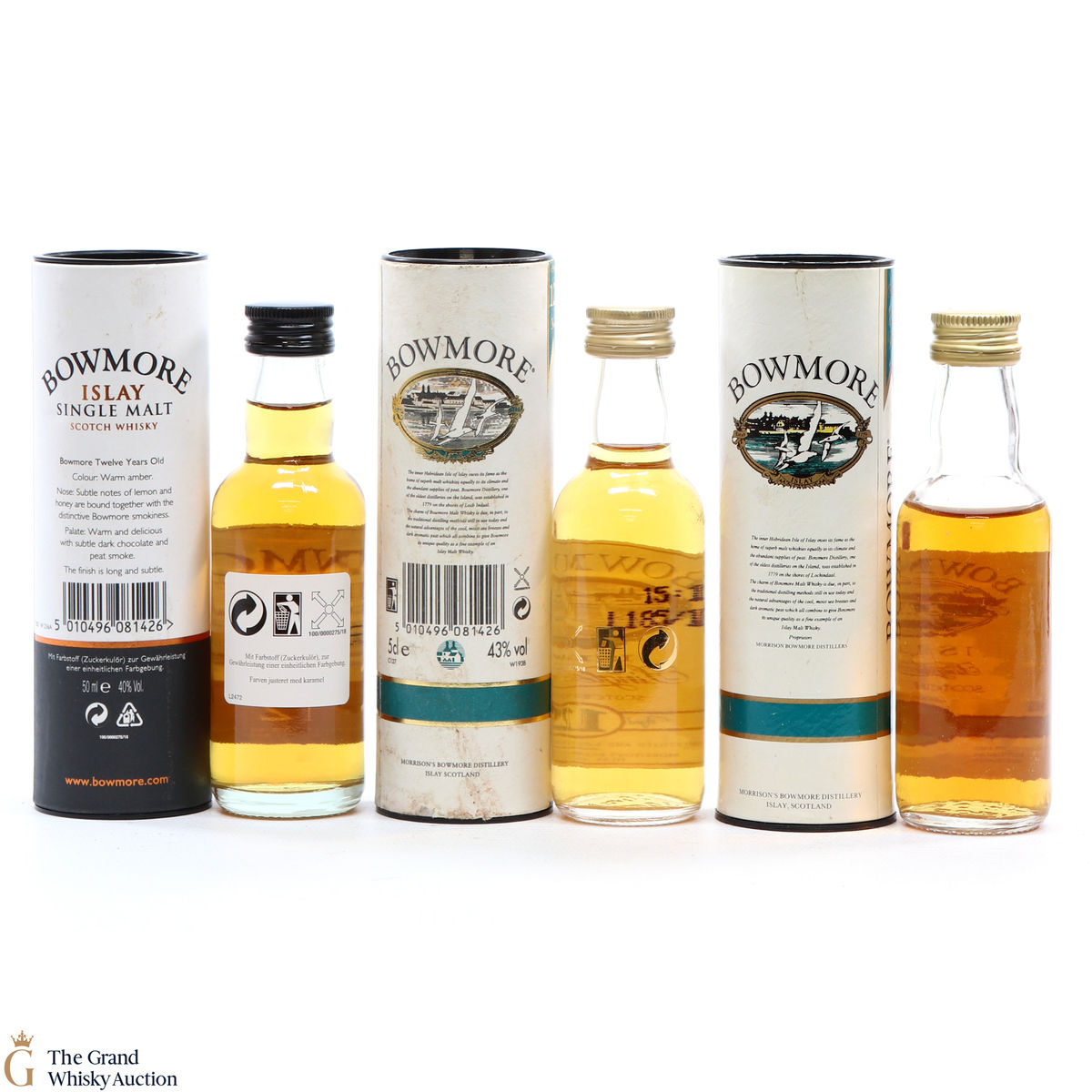 This lot includes 3 x Bowmore 12-Year-Old miniature bottles.