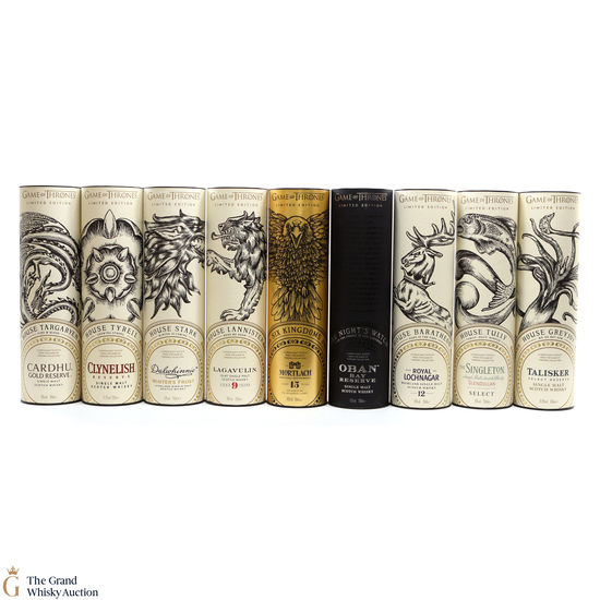 Game of Thrones series plus Johnnie Walker White Walker Game of Thrones edition, Song of Fire and Mortlach, Six Kingdoms edition. This lot includes 10 x 70cl.