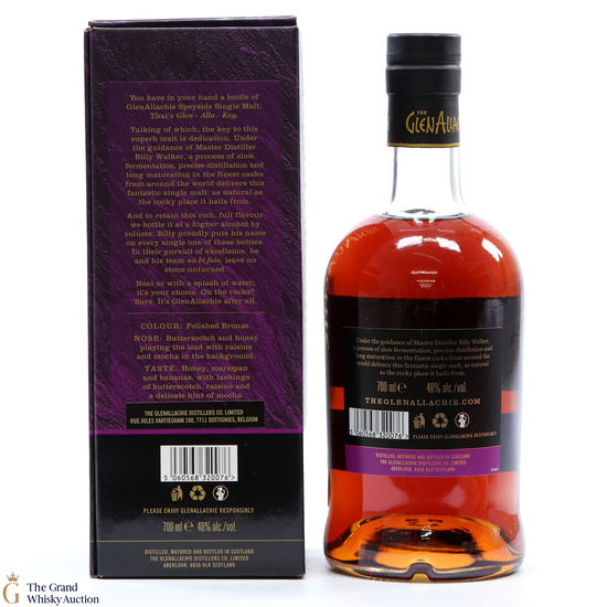 Bottled and chosen by master distiller Billy Walker at Glenallachie Distillery in Speyside this 12 year old bottling has been matured in virgin oak, oloroso sherry and Pedro Ximénez sherry casks to get the sweet flavours.