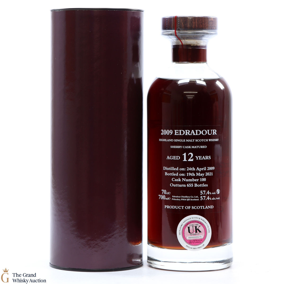 This is a cask strength Edradour, matured in single cask #100. Distilled on 24/April/2009 and bottled on the 19th May 2021 at 57.4%. This is one of only 655 decanters produced.