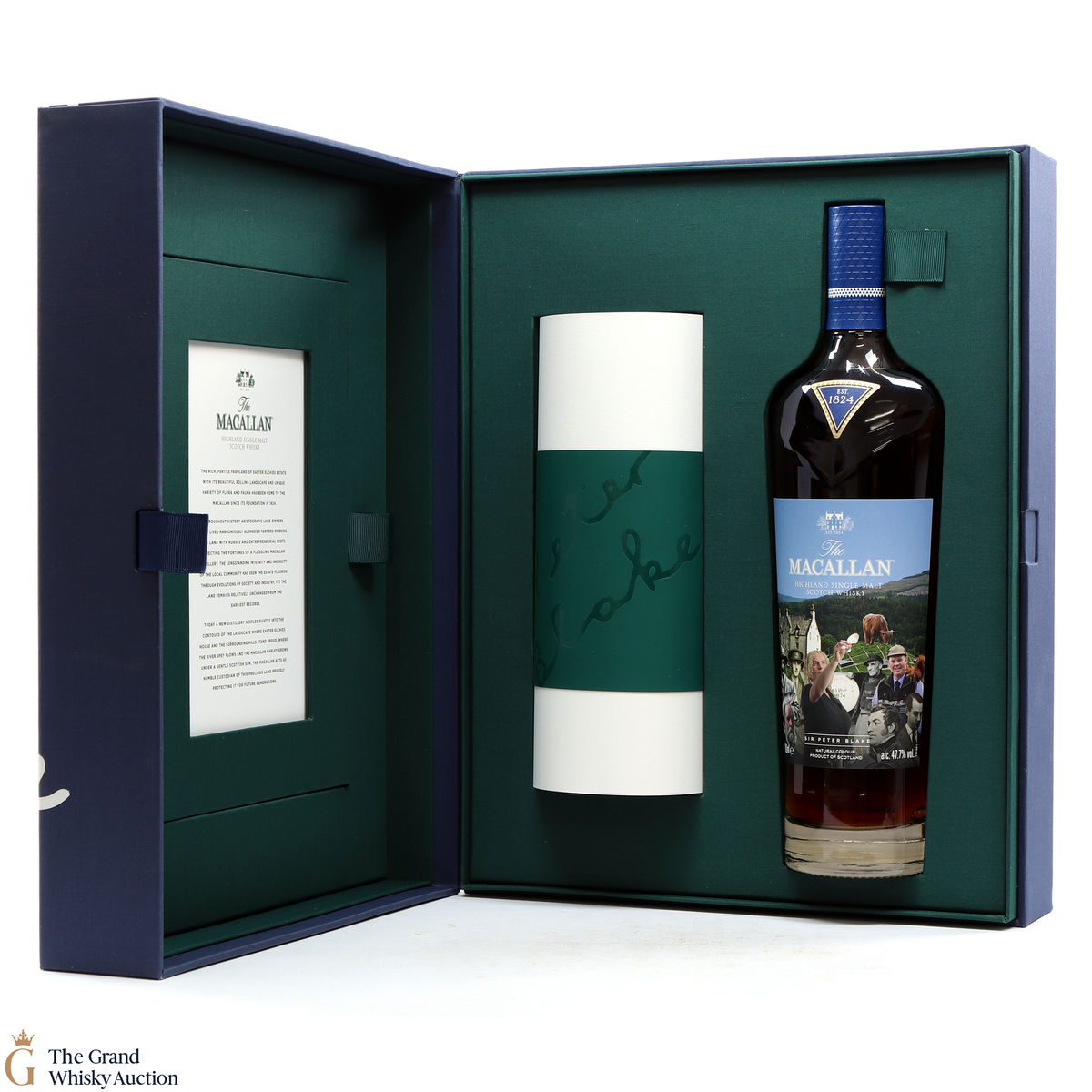 Along with this unique bottle of whisky is a scroll of artwork showing Sir Peter Blake's distinct style and a certificate detailing the history and heritage on which Sir Peter's art was based. There is also a piece of tracing paper which provides information on each character from The Macallan's history that Sir Peter chose to include in his art.