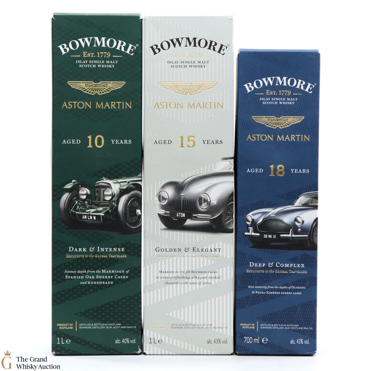The full collection of the collaboration between Bowmore and Aston Martin, both creating timeless beauty and a lasting legacy. Each edition of the Aston Martin collection features a different car. Included in this lot is edition 1, 2 and 3: