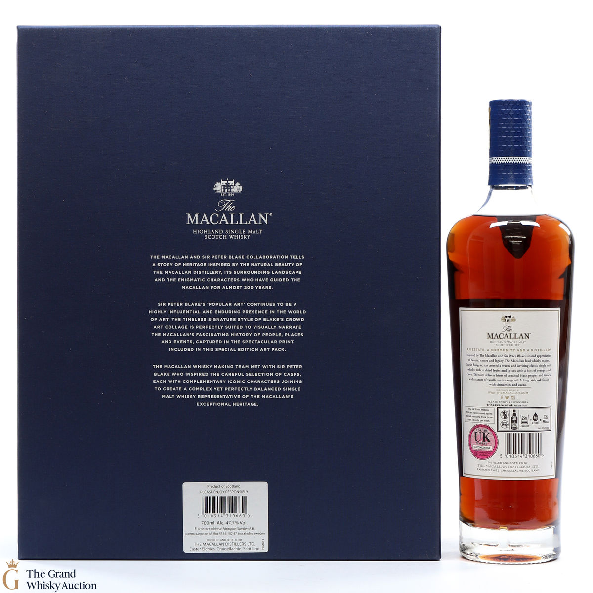 Part of The Anecdotes of Ages Collection, this is an extraordinary art and whisky collaboration with Sir Peter Blake. Being the third collaboration between the Macallan Distillery and Sir Peter Blake, this single malt was created to commemorate Sir Peter Blake's visit to The Macallan Estate. An Estate, a Community and a Distillery tells the story of some of the colourful characters from the distilleries past and present and features a label designed by Sir Peter Blake.