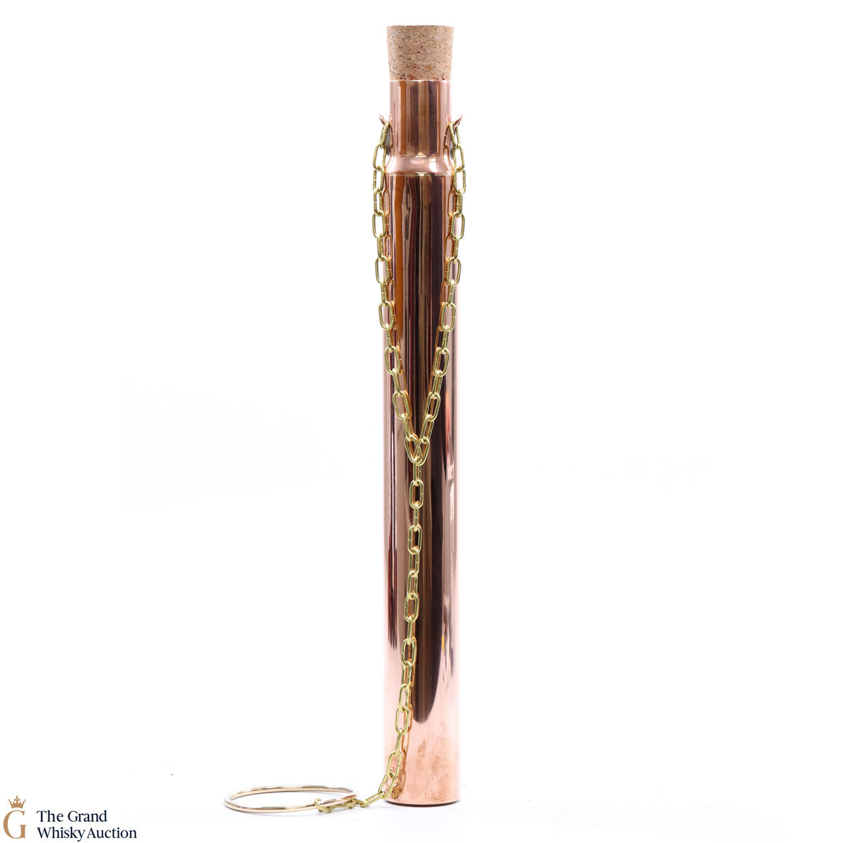 Copper dipping dogs originated in the 1800s in Scotland. Distillery workers crafted dipping dogs to lower into casks to steal whiskey. The dipping dogs were attached to chains, secured to the workers' belts and concealed in their pant legs. The thieves could then easily take a drink on the job or sneak it out.