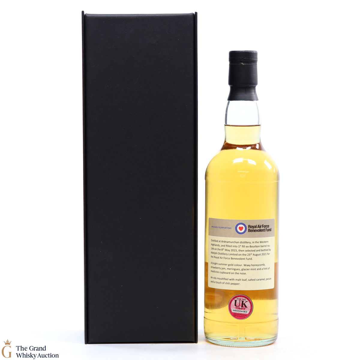 Independent bottler Adelphi released this Ardnamurchan in 2021 exclusively for the Royal Air Force Benevolent Fund. Filled in May 2105 and then bottled on the 23rd August 2021 from barrel #144 this 1st fill ex-bourbon was bottled at 59.1% ABV. One of only 250 bottles.