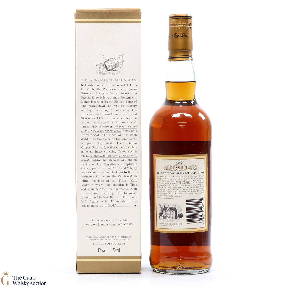 This is an old-style presentation of Macallan 10 Year old was bottled in the 1990's. This classic Speyside malt whisky matured in sherry oak casks from Jerez. Very collectable.