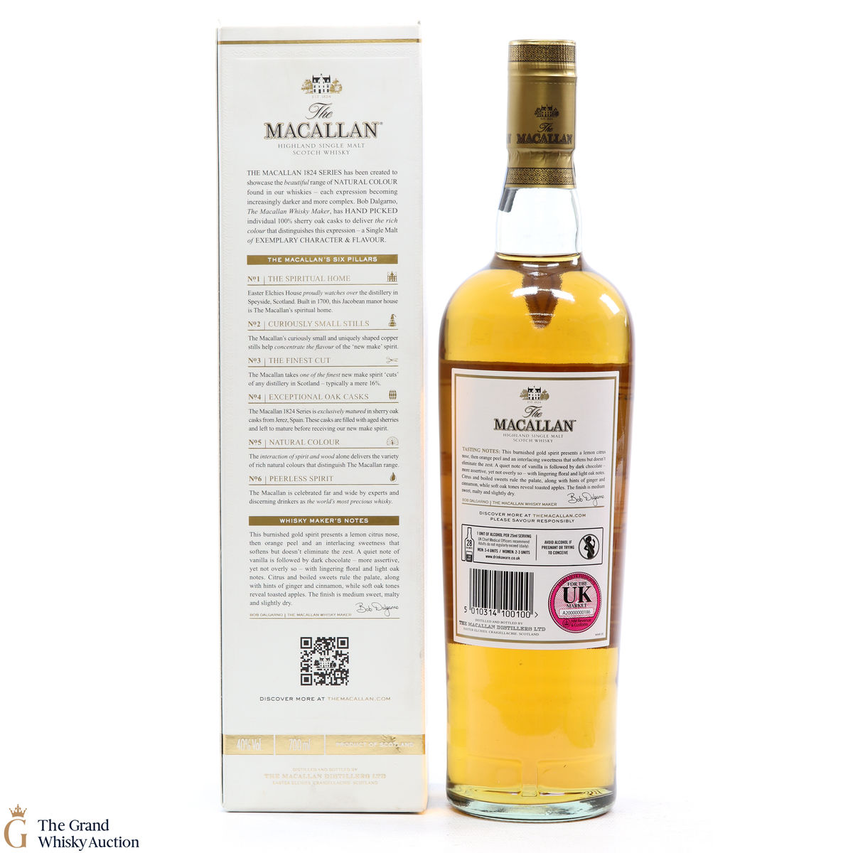 The Macallan 1824 Series celebrates natural colour. The most distinctive and defining characteristic of Macallan is the sherry-seasoned oak casks that are used to mature the whisky. This series shows commitment to 100% natural colour, drawn from wood. The colour of each expression becomes deeper as the range progresses.