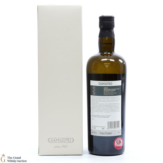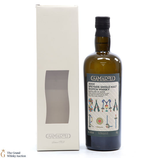 A 2009 Glenallachie, matured in cask 900332 and bottled in 2021 by Samaroli. The single malt spent over 11 years maturing in an oak cask. This is one of just 470 individually numbered bottles produced at 43% abv.