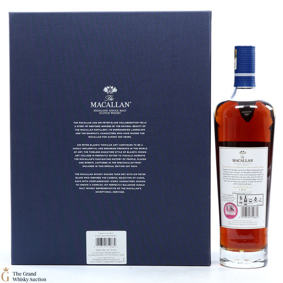 Part of The Anecdotes of Ages Collection, this is an extraordinary art and whisky collaboration with Sir Peter Blake. Being the third collaboration between the Macallan Distillery and Sir Peter Blake, this single malt was created to commemorate Sir Peter Blake's visit to The Macallan Estate. An Estate, a Community and a Distillery tells the story of some of the colourful characters from the distilleries past and present and features a label designed by Sir Peter Blake.