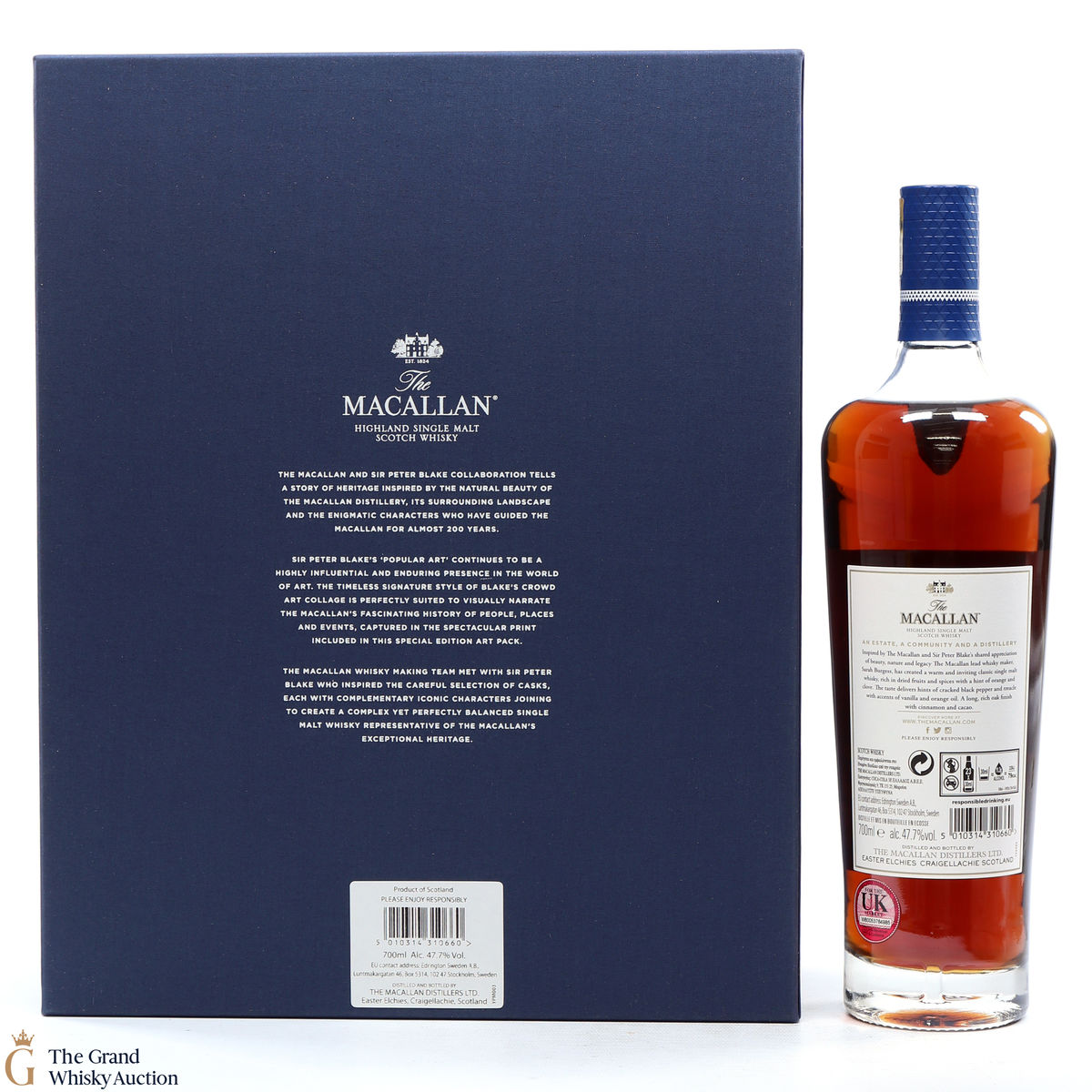 Part of The Anecdotes of Ages Collection, this is an extraordinary art and whisky collaboration with Sir Peter Blake. Being the third collaboration between the Macallan Distillery and Sir Peter Blake, this single malt was created to commemorate Sir Peter Blake's visit to The Macallan Estate. An Estate, a Community and a Distillery tells the story of some of the colourful characters from the distilleries past and present and features a label designed by Sir Peter Blake.