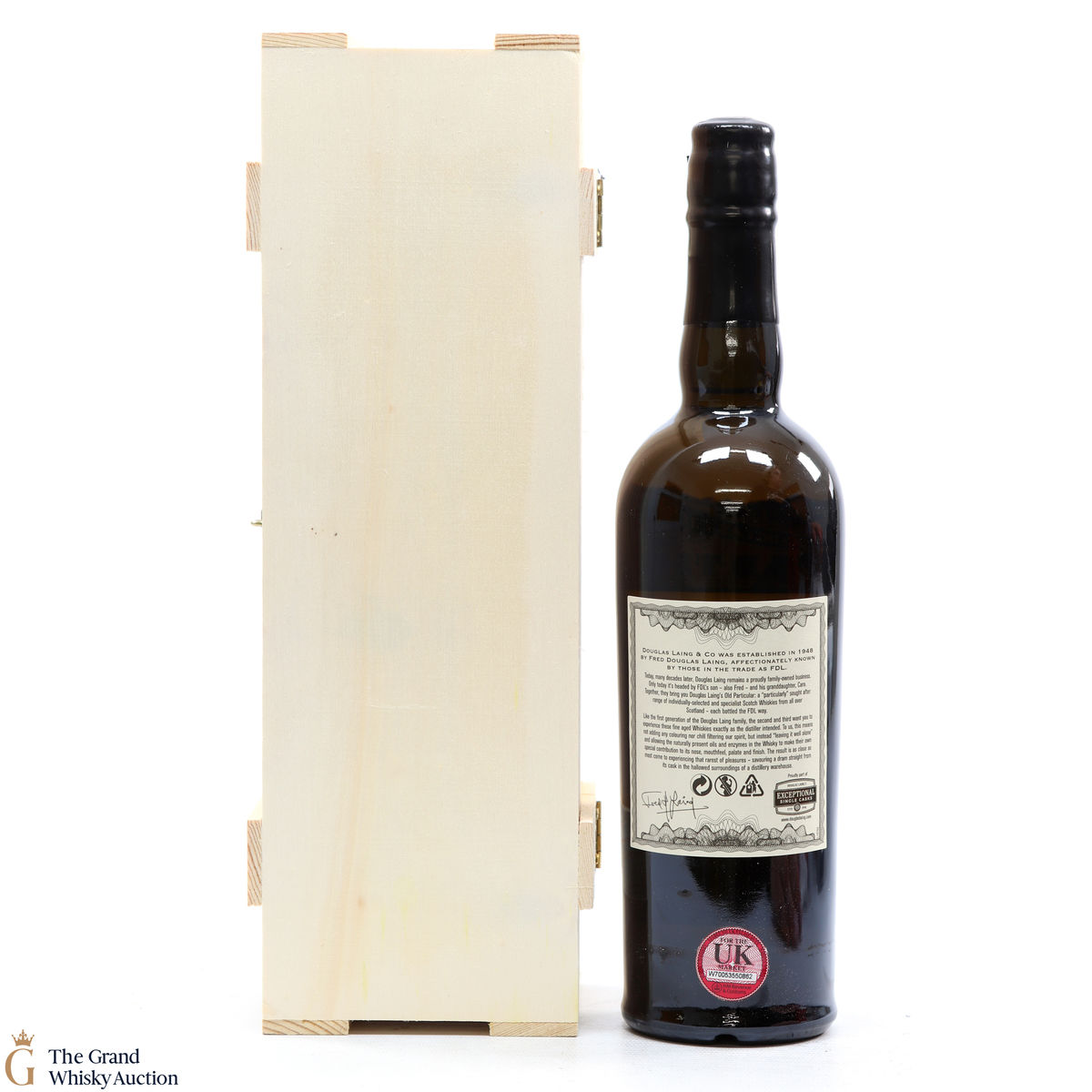 Due to the various ages of bottles and their seals, the condition of liquid is at the buyer's discretion and no claim can be lodged against failure/leakage in transit. Loss and breakage cover is available at 3% of the hammer price as standard. If the lot is not insured, no claim can be lodged against the courier or The Grand Whisky Auction for breakage or loss in transit.