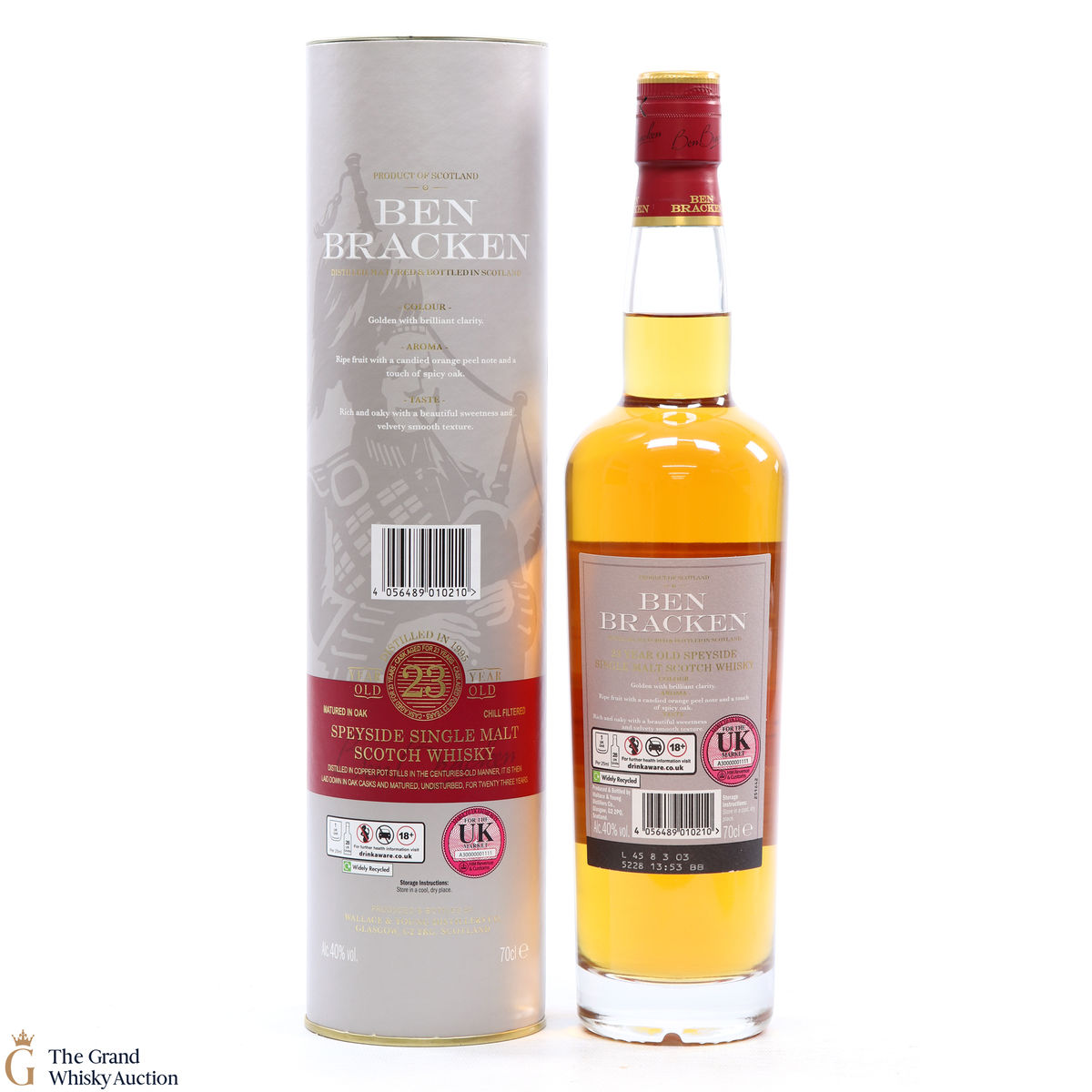 Distilled at the Ben Bracken Distillery in Speyside, this single malt underwent maturation 23 years in oak casks until it was bottled at 40% ABV.