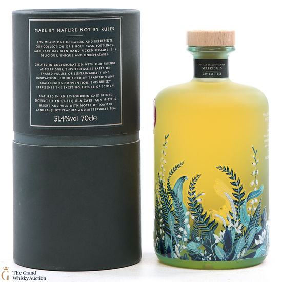 This is the first of their single cask releases, exclusively for Selfridges. 'Aon' means one in Gaelic and is the name of the Nc'Nean single cask releases. Created in collaboration with Selfridges, based on their shared values of sustainability and innovation. Matured in an ex-bourbon cask before moving into an ex-tequila cask. Bottled at 51.4%.