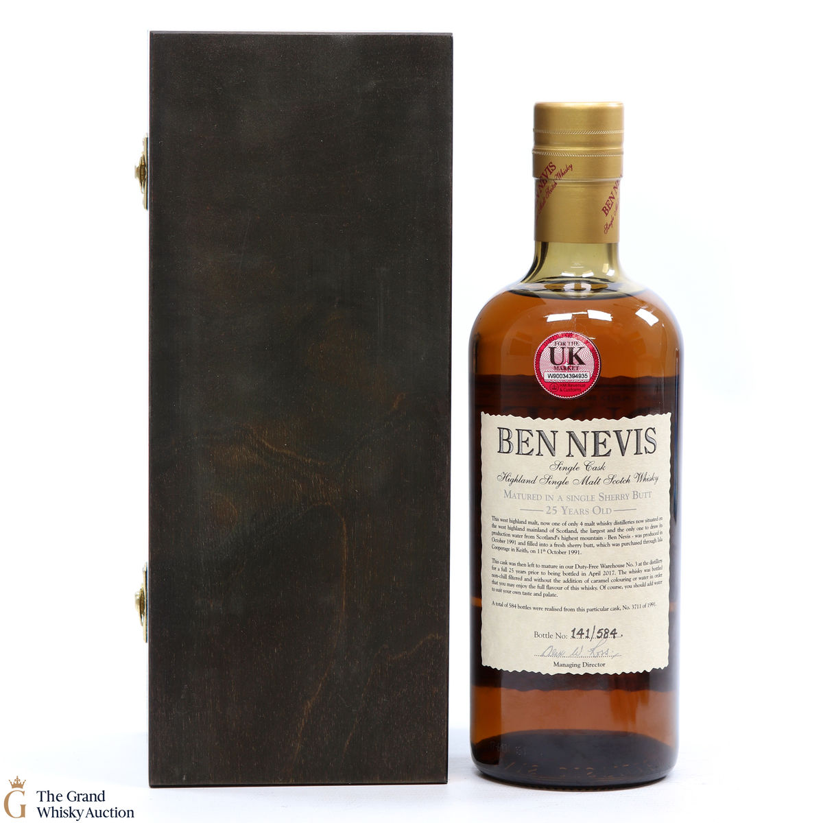 A single sherry cask, cask-strength Ben Nevis distilled in October 1991 and bottled in April 2017. Distilled just a year after Ben Nevis re-opened, this whisky was filled into a fresh sherry butt and matured in Warehouse No.3 for 25 years.