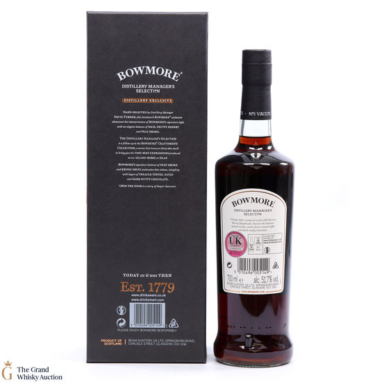 The Bowmore Distillery Manager's Selection is a follow up to the Bowmore Craftsmen's Collection.