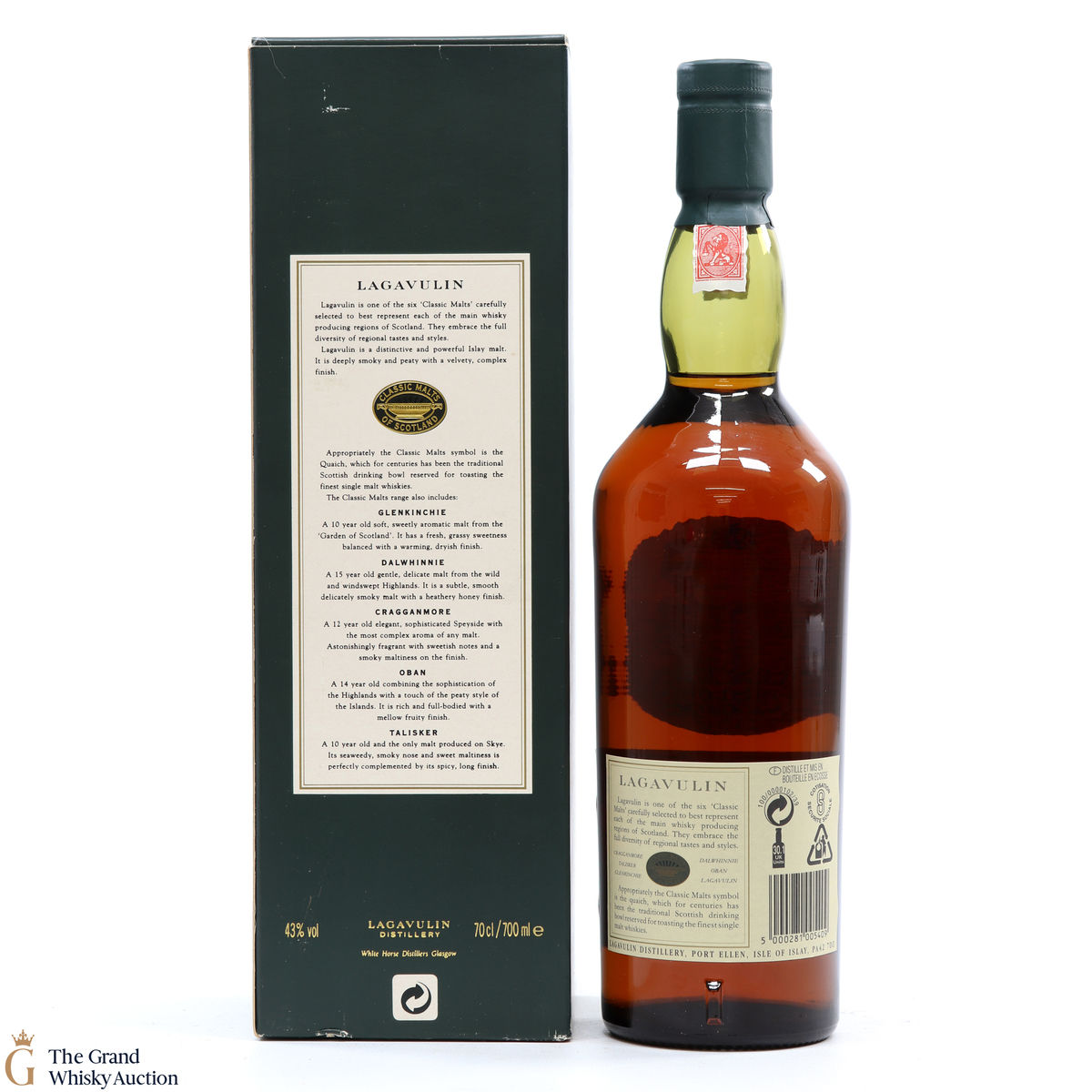Due to the various ages of bottles and their seals, the condition of liquid is at the buyer's discretion and no claim can be lodged against failure/leakage in transit. Loss and breakage cover is available at 3% of the hammer price as standard. If the lot is not insured, no claim can be lodged against the courier or The Grand Whisky Auction for breakage or loss in transit.