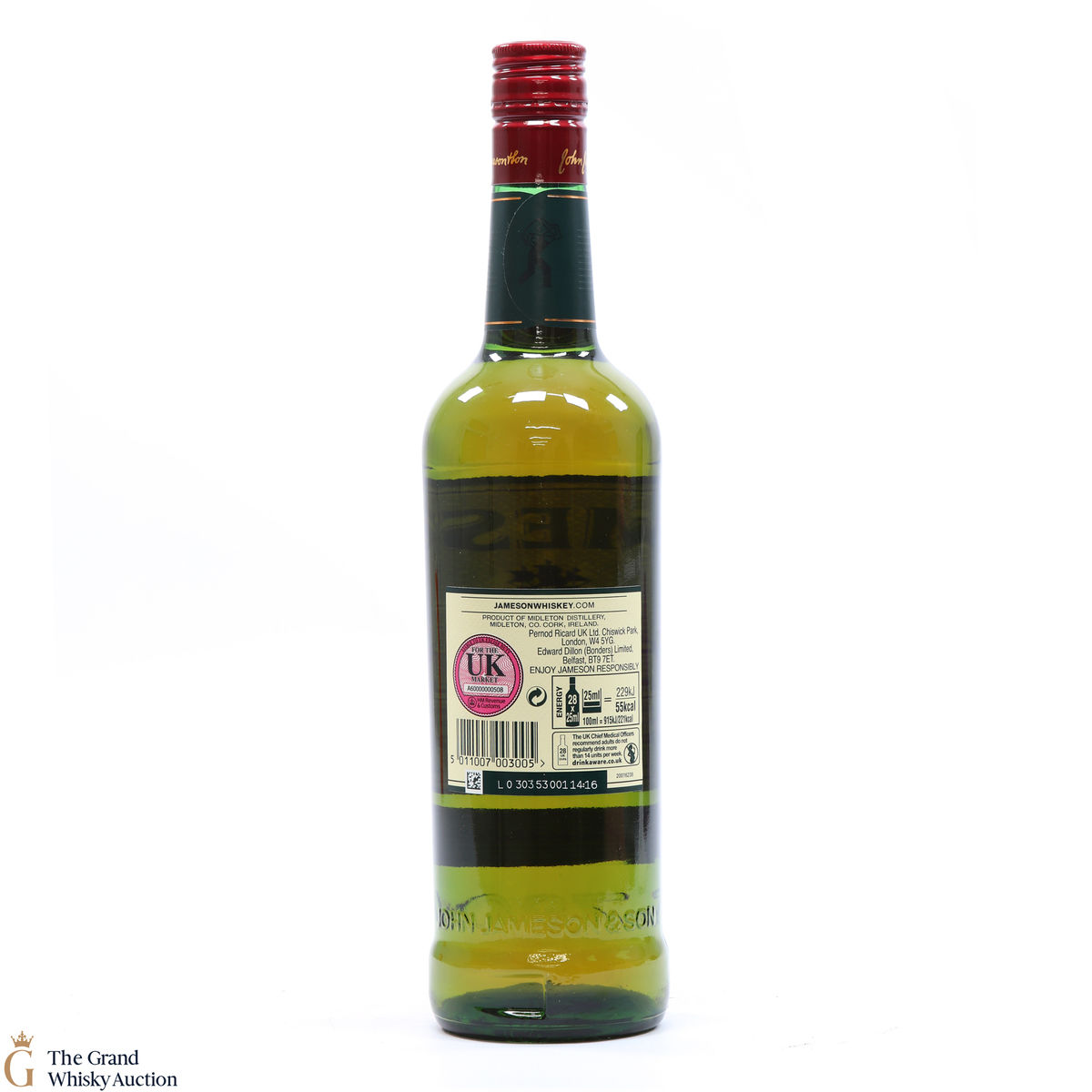A classic bottle of Jameson Irish whisky produced at the Midleton Distillery.