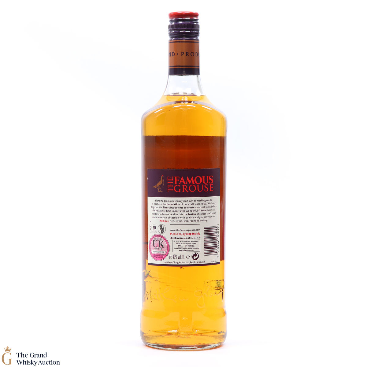 Famous Grouse blended scotch whisky was first produced by Matthew Gloag & Son Ltd in 1896, and is currently produced and owned by The Edrington Group.