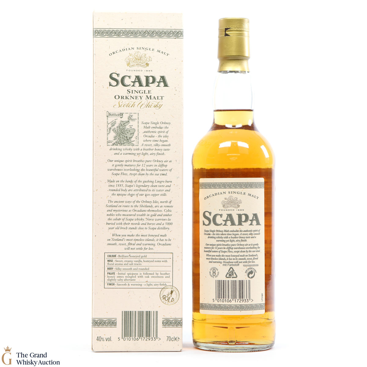 A long discontinued 12 Year Old from the Scapa Distillery in Orkney. It was matured for 12 years in clifftop warehouses overlooking the beautiful waters of the Scapa Flow.