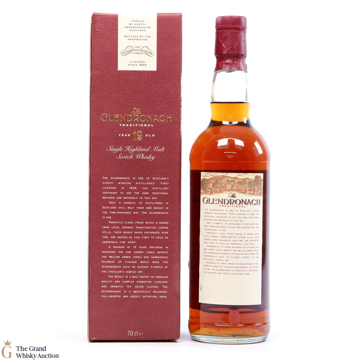 This is an old bottling of GlenDronach 12 Year Old Traditional single malt. It was matured in seasoned oak and Sherry casks. This is a bottle from the 1990s.