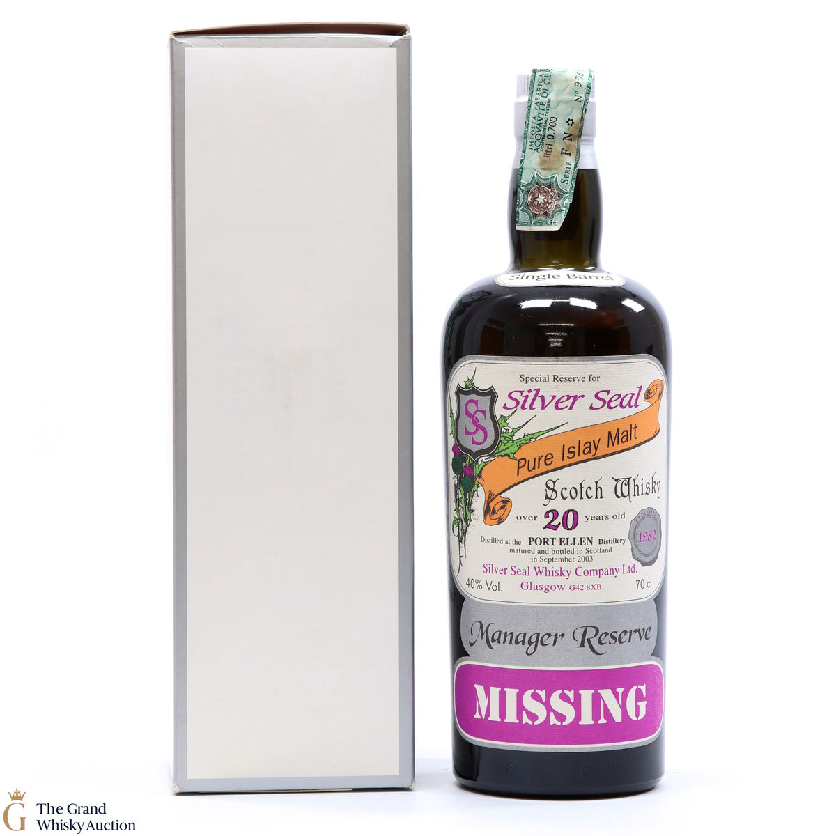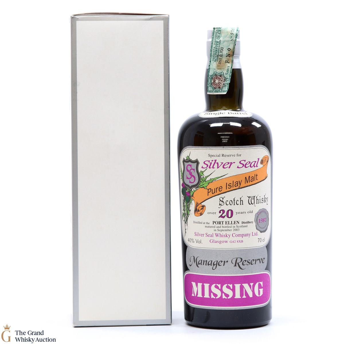 This 20 Year Old Post Ellen single malt was distilled in 1982 and makes part of the extremely rare series of manager reserve bottles produced by Silver Seal. This is one of only 360 bottles.