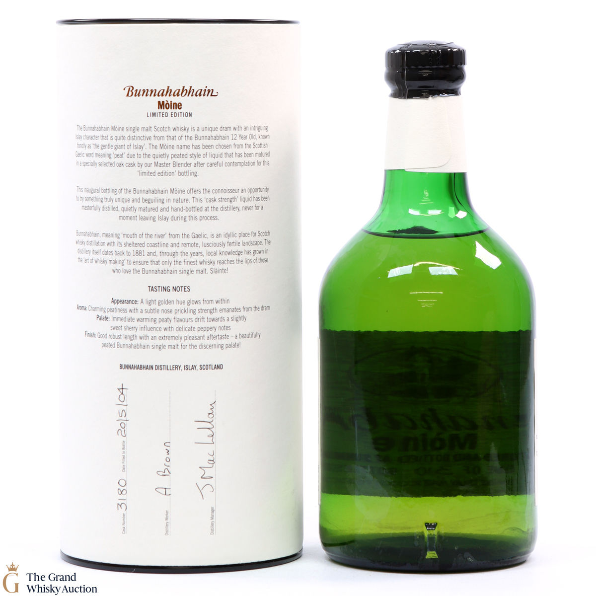 A peated expression from Bunnahabhain. In Gaelic the word for “Peat” is Moine. This limited edition is one of only 310 bottled from cask #3180 in 2004 at the cask strength of 59.6%.