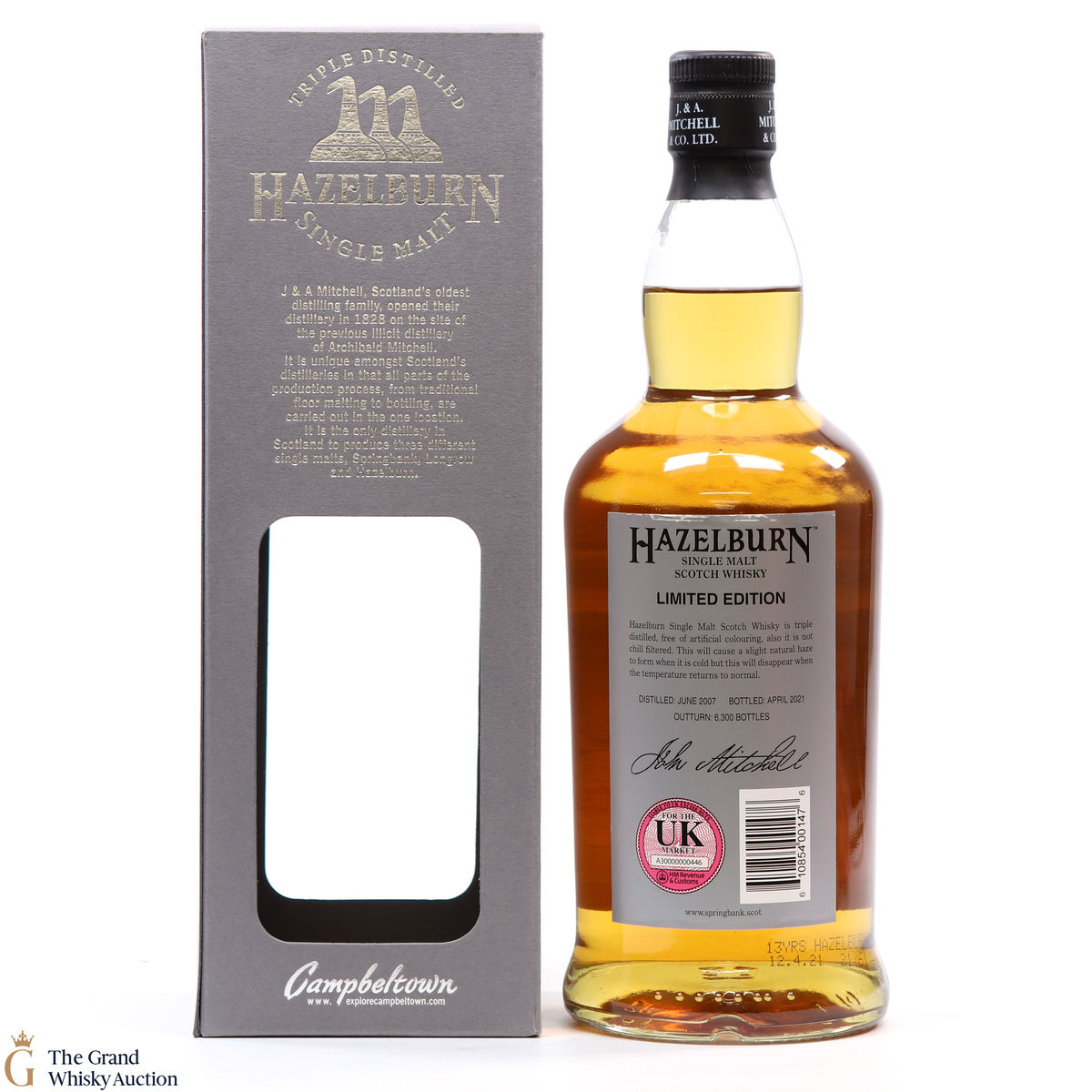 Distilled in June 2007 at Hazelburn Distillery in Campbeltown, this single malt underwent maturation for 13 years before being bottled in April 2021. This rare bottling is one of only 6300 produced.