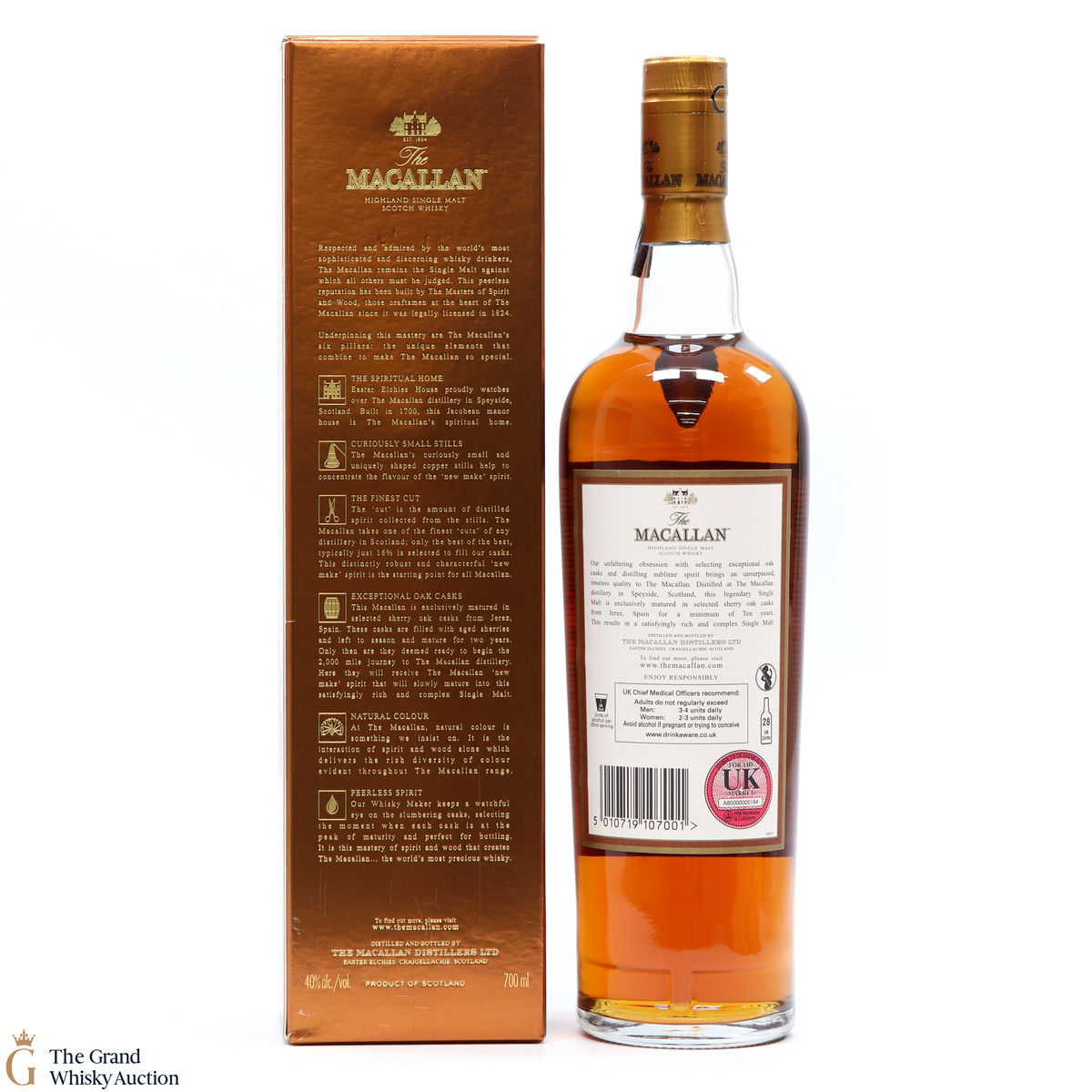 Matured exclusively in oak sherry casks from Jerez in Spain. This age statement was discontinued by Macallan in 2013.