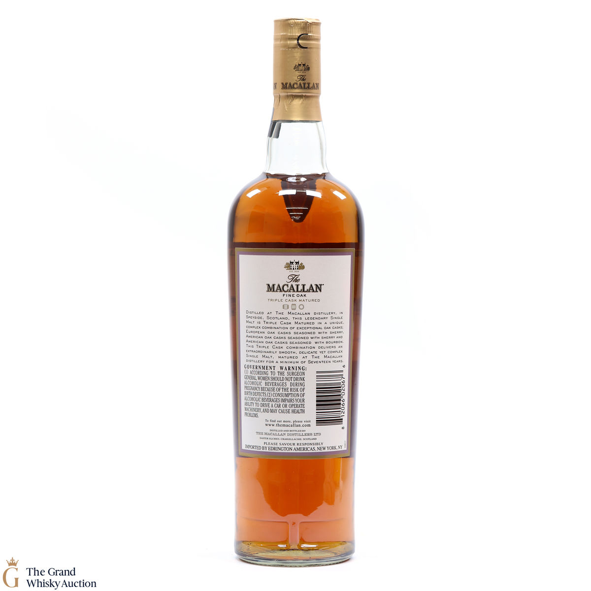 The Macallan Fine Oak 17 Years Old is part of the Macallan Fine Oak range. It has been matured for a minimum of seventeen years in three oak cask types including American and European ex-oloroso sherry and American oak bourbon casks. It was introduced to the US market in 2006.