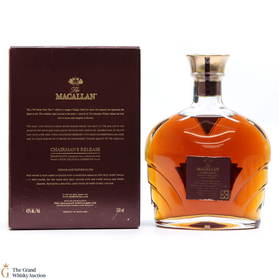 The Chairman's Release is considered the flagship of Macallan's 1700 series. The series takes its name from the year that Easter Elchies House, the home of The Macallan, was built.