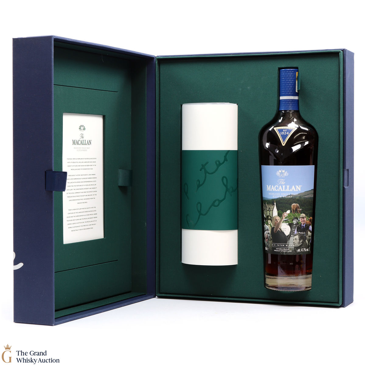Along with this unique bottle of whisky is a scroll of artwork showing Sir Peter Blake's distinct style and a certificate detailing the history and heritage on which Sir Peter's art was based. There is also a piece of tracing paper which provides information on each character from The Macallan's history that Sir Peter chose to include in his art.