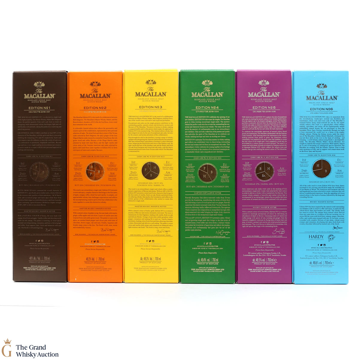 This lot brings together the Macallan Edition set to date, comprising of Edition no. 1, 2, 3 4, 5 & 6 in the annual limited edition series.
