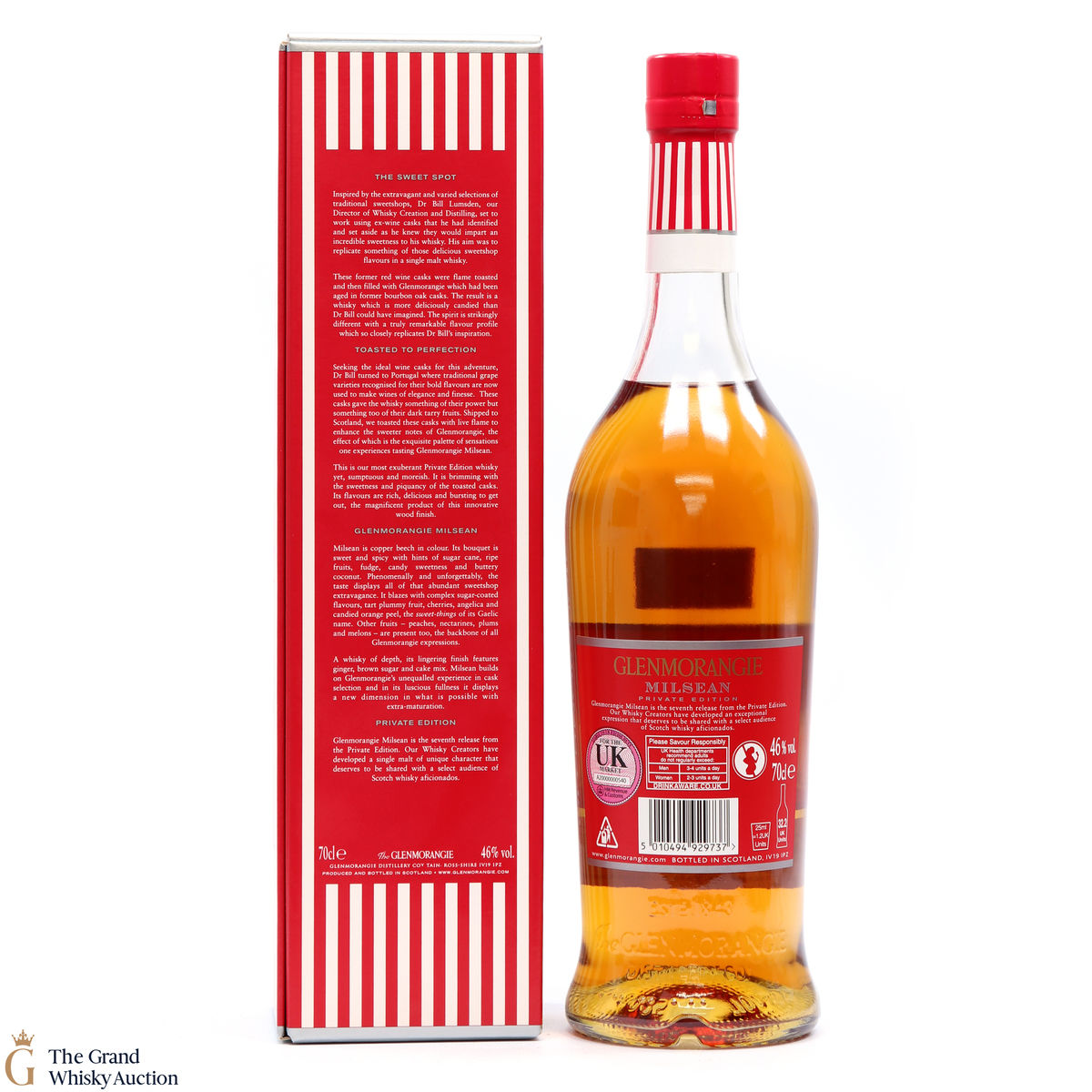 Milsean was the seventh release in Glenmorangie's Private Edition series. It was finished for two-and-a-half years in 154 toasted ex-Portuguese-red-wine barriques. This highland malt is sweet with notes of tropical fruit and lemon sherbet, backed up with some ginger spice.