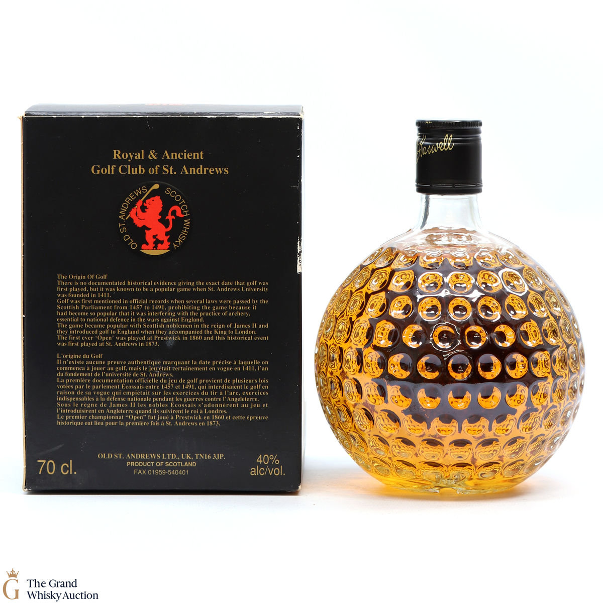 Old St Andrews Clubhouse, a blended whisky in the bottle form of a golf ball-shaped decanter.