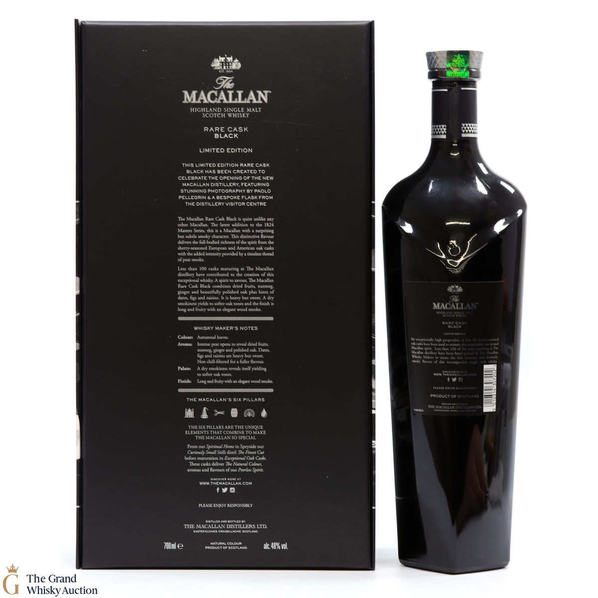 The Macallan Rare Cask Black Limited Edition was released to celebrate the opening of the new Macallan Distillery. It is part of the Macallan 1824 series and features stunning photography by Paolo Pellegrin and a bespoke flask from the Distillery Visitor Centre. The release was a limited edition of 7000 sets, which were only available at airports.