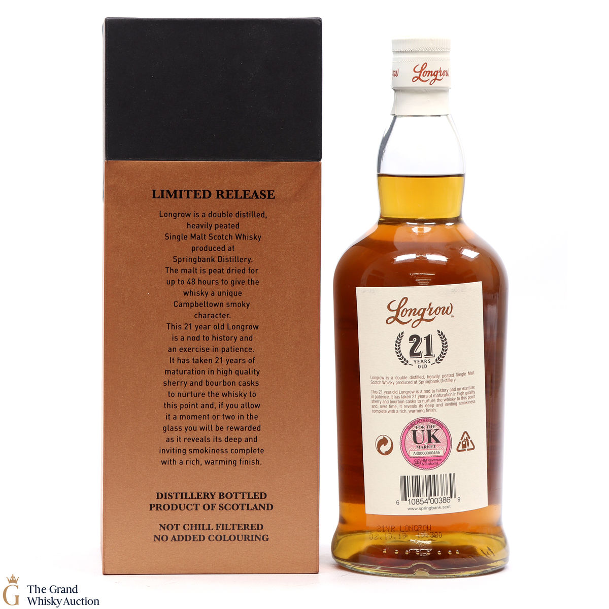 This 21-year-old Longrow, is a limited edition from Springbank Distillery in Campbeltown. This is one of only 3,600 bottles produced after maturation in 60% Sherry and 40% ex-Bourbon casks.