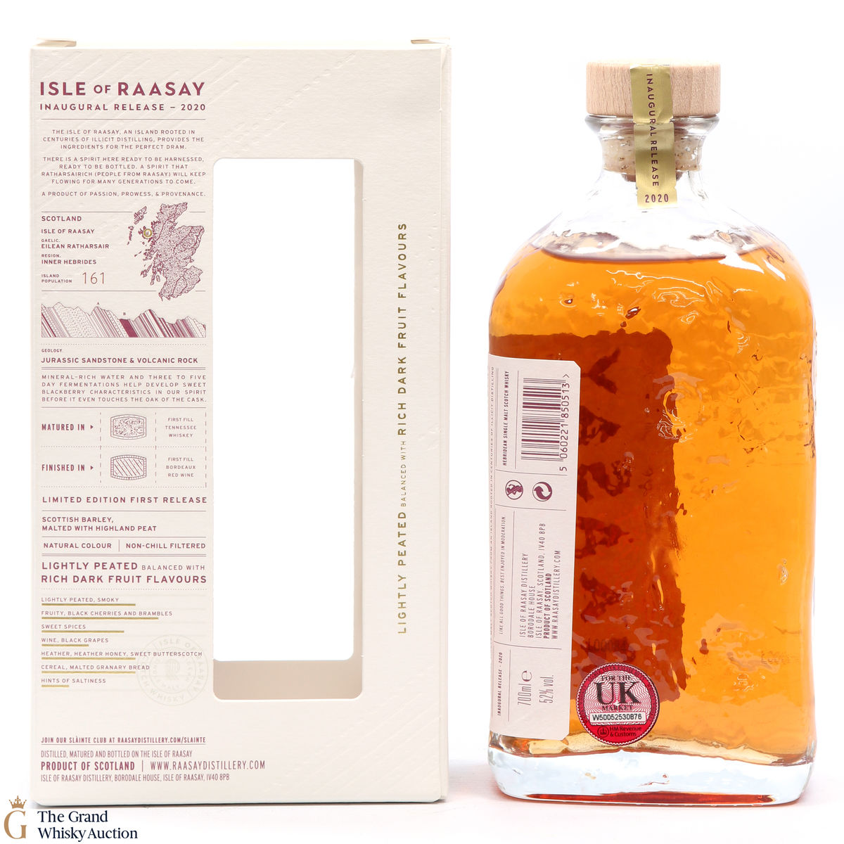 The inaugural release from the Isle of Raasay distillery is a limited edition release matured in first-fill American oak, and finished in 21 exclusive first fill Bordeaux red wine casks. They have created an elegant, lightly peated (15-20 Peat or Phenol Parts Per Million). Bottled at 52% and in a unique glass bottle which captures the island's geology.