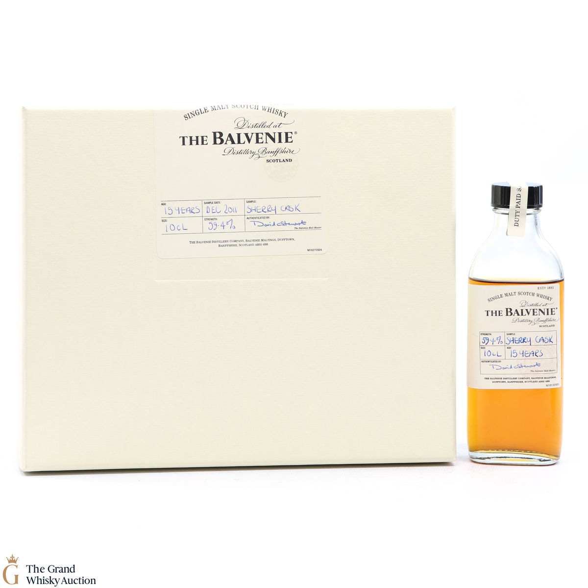 A 10cl duty paid sample from Balvenie. This sampled was taken in December 2011 from a 15 Year Old Sherry cask. It comes with 2 x branded glasses.